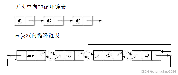 1. 无头单向非循环链表:结构简单,一般不会单独用来存数据。实际中更多是作为其他数据结构的子结 构,如哈希桶、图的邻接表等等。另外这种结构在笔试面试中出现很多。