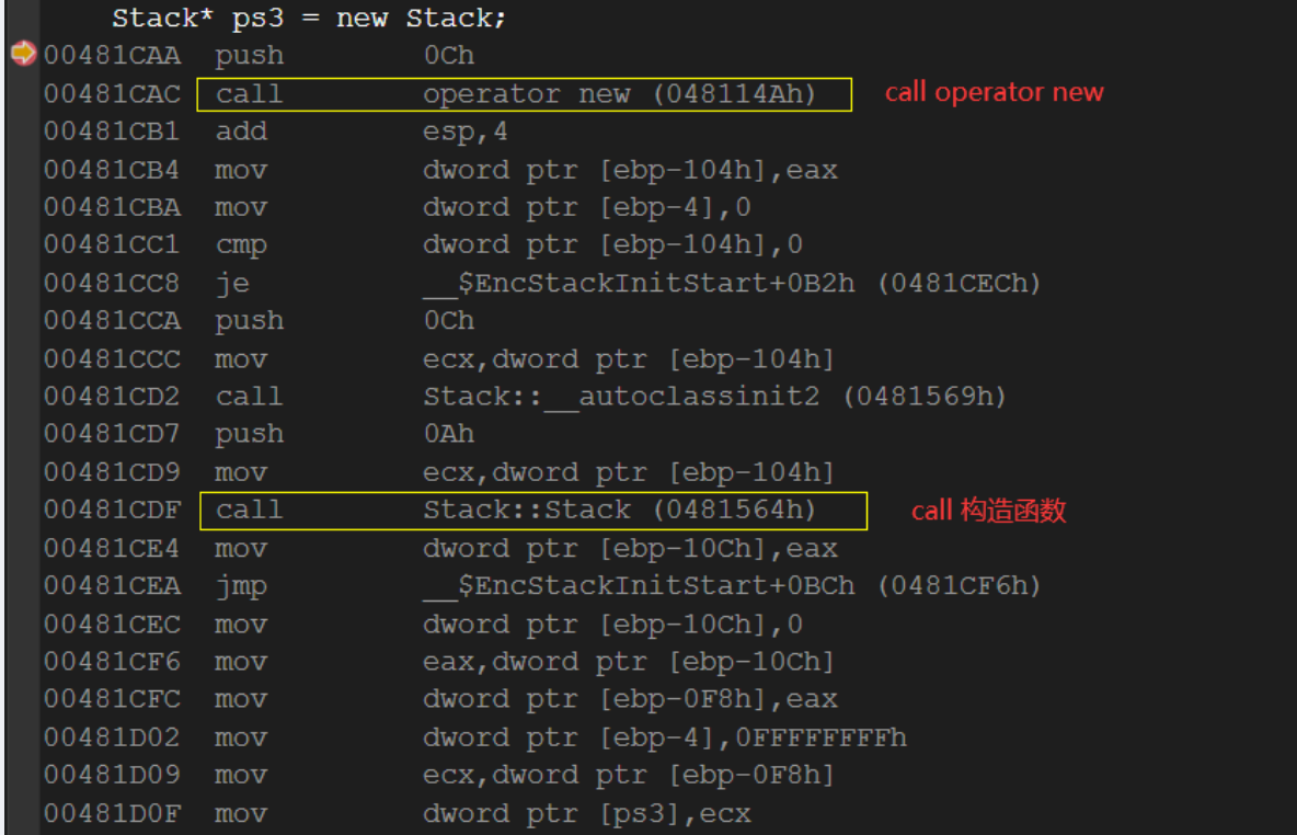2.在申请的空间上执行构造函数,完成对象的构造