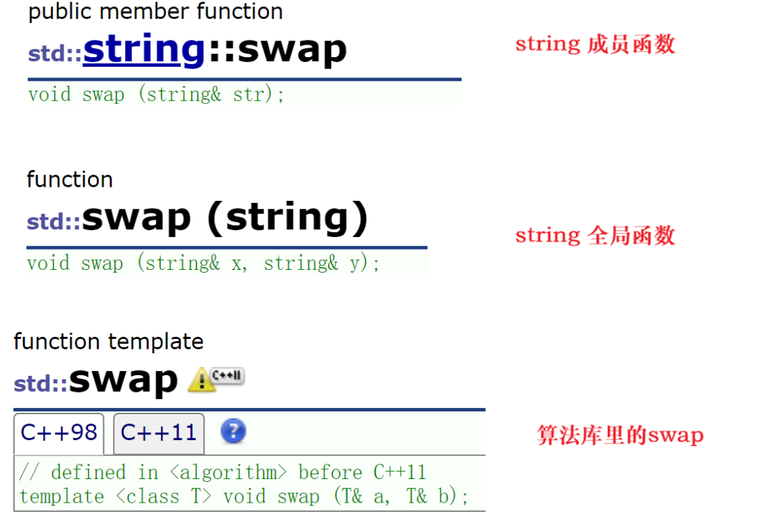 但是实际上,当我们去调用swap,编译器并不会调用算法库内的swap,优先调用string 的全局函数swap,而且全局函数的swap 是对成员函数 swap 的封装。