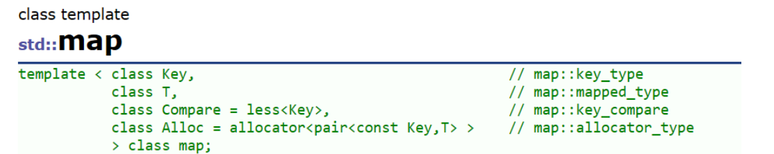 Compare: 比较器的类型,map中的元素是按照key来比较的,缺省情况下按照小于来比