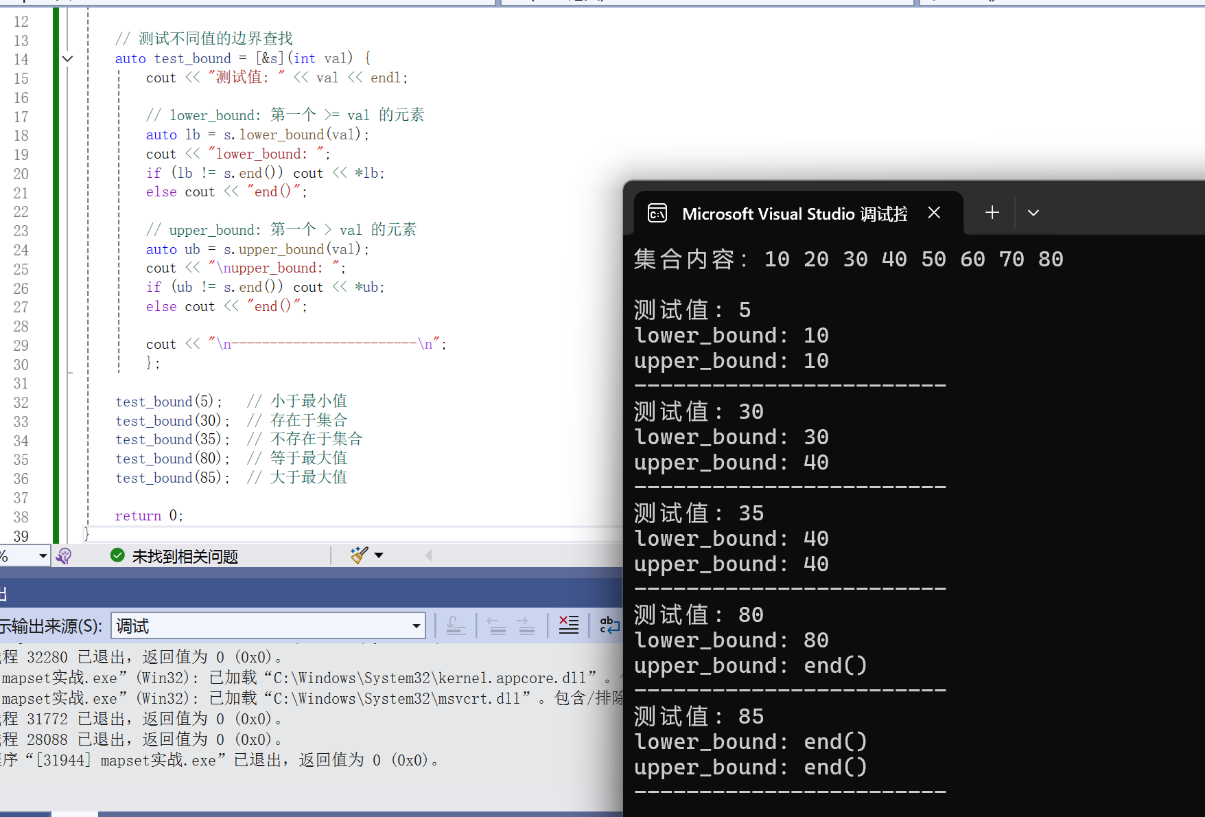 test_bound(30); // 存在于集合