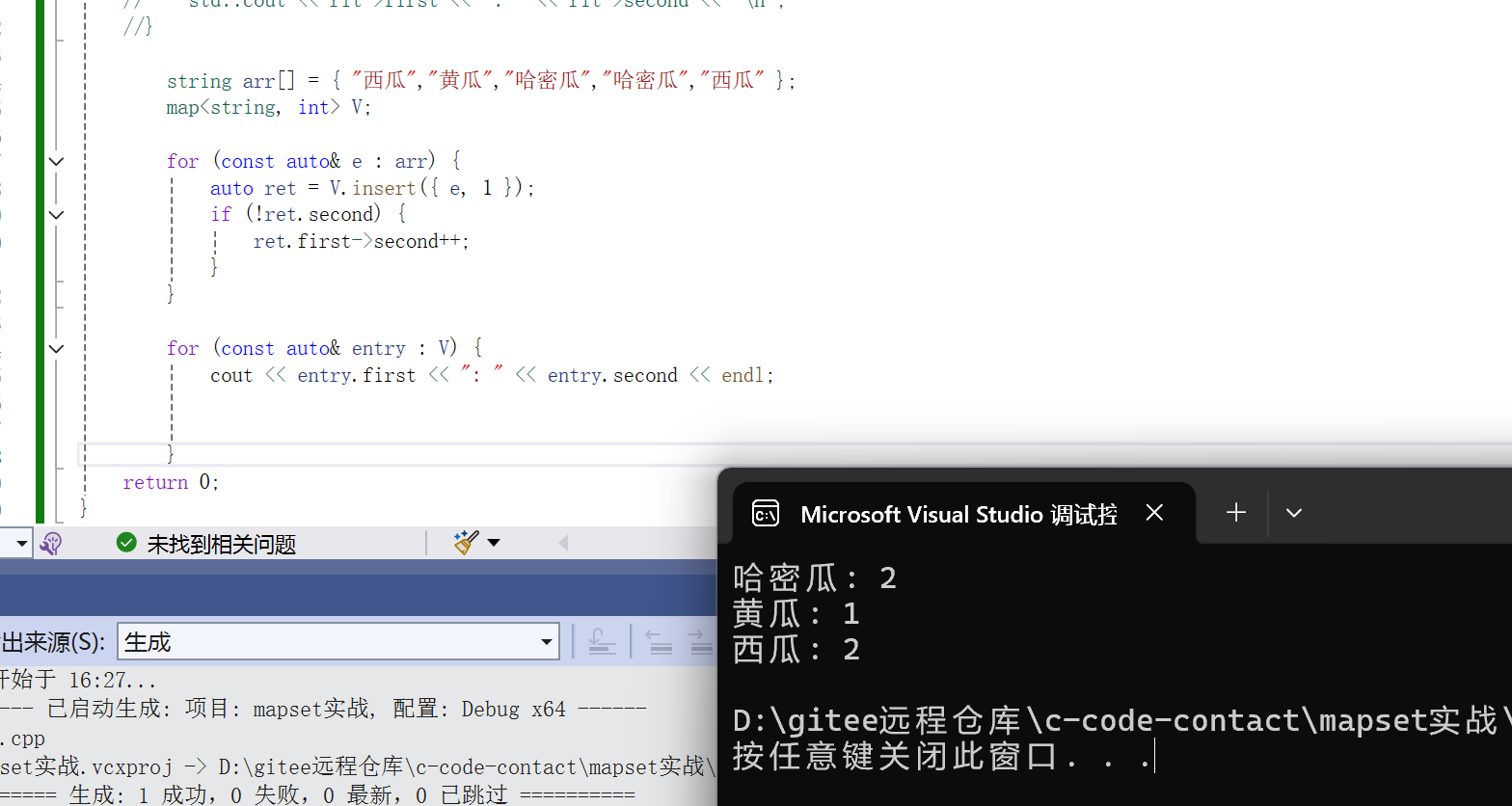 2. set中插入元素时,只需要插入value即可,不需要构造键值对。