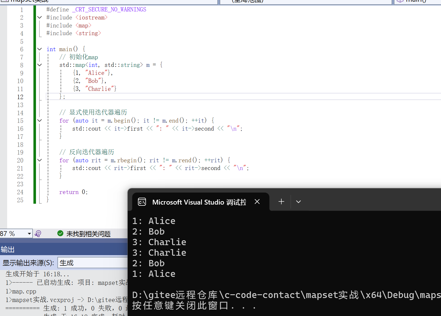 注意:在使用map时,需要包含头文件。