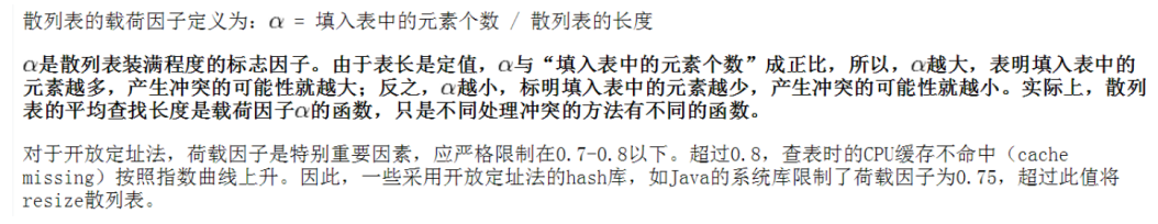 (2)负载因子越大 → 哈希冲突概率越高,查找效率可能会退化至O(n)