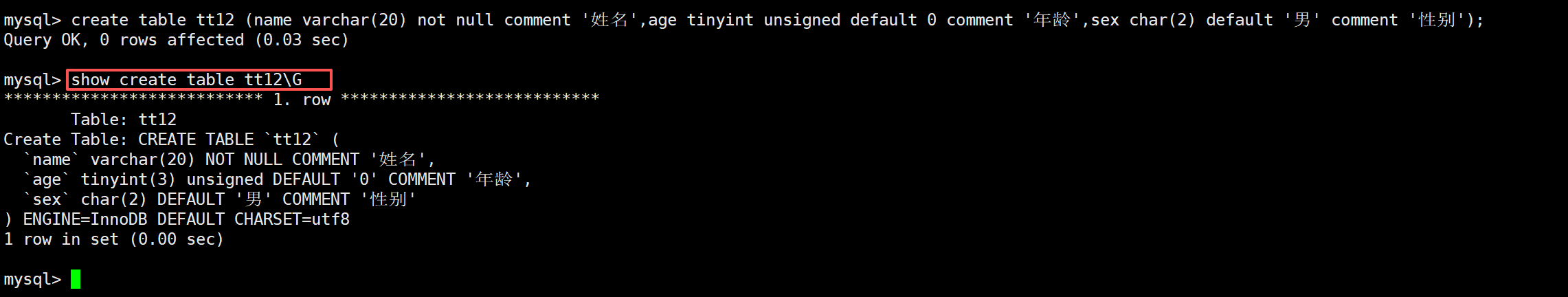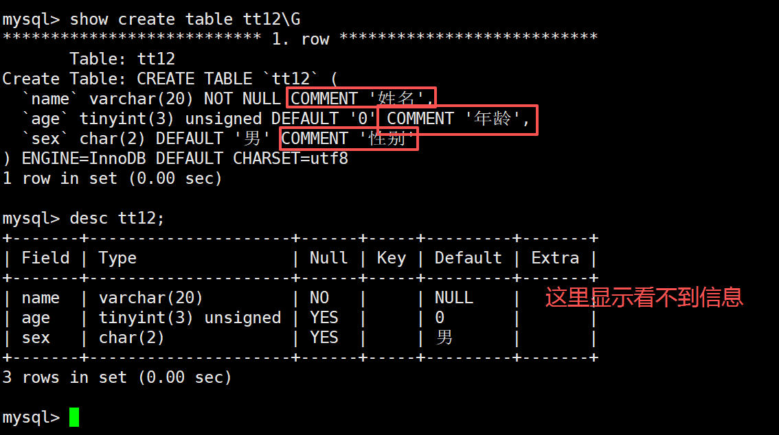在定义字段时我们可以使用comment来描述这一列,列描述没有实际含义,它的意义是说明,专门用来描述字段,会根据表的创建语句保存,用来给别人快速了解该字段的含义是什么。