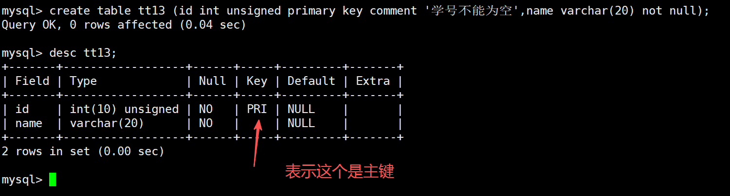 如果我们又想要给表中的某一列添加主键,可以使用下面的语句: