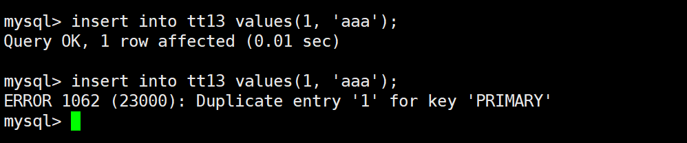 可以看到因为主键的存在,我们无法插入已拥有的数据。