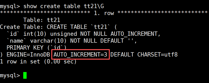 这里我们可以看到id会自增长,如果我们这里插入id为1000的呢,那么id下一个自增就从1001开始,我们也可以看一下注释。