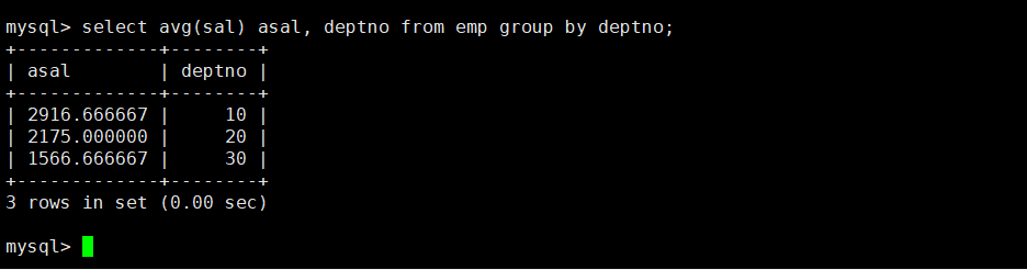 这道题目我们逐层分解的话,首先需要查询到各个部门的平均工资,输入语句select avg(sal) asal, deptno from emp group by deptno;