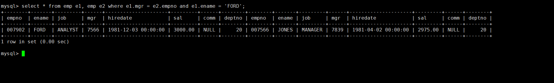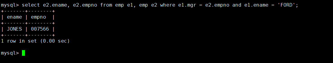 最后再查询FORD上级领导的编号和姓名,输入指令: