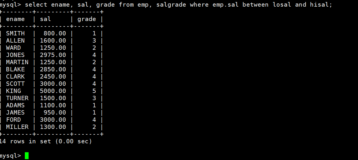DROP TABLE IF EXISTS `salgrade`;