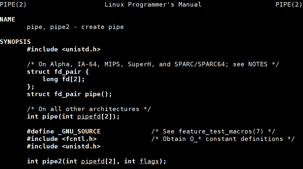 fd:⽂件描述符数组,其中fd[0]表⽰读端, fd[1]表⽰写端