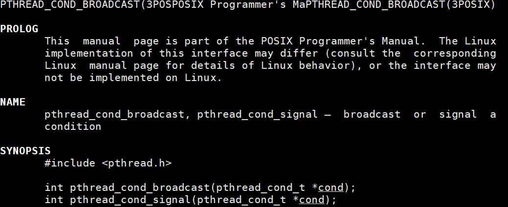 pthread_cond_broadcast函数也是唤醒在指定条件变量下等待的线程,只不过它是唤醒在等待的所有线程,参数也是传递指定的条件变量即可。