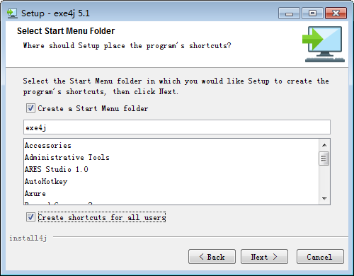 第四步:在开始菜单建立快捷方式,我还勾选了下方的“为所有用户创建快捷方式”