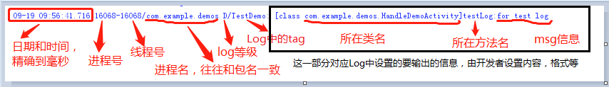 在main文件中,往往包含了大量的log信息。前面讲到的logcat视图或adb logcat捕获的log,以及不同机型手机中不同类型的log,其实基本结构基本相同。单条信息中也都包含了日期、时间、进程号、线程号、log等级、TAG,msg等信息。如下图所示:
