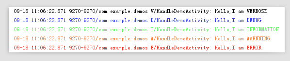 Android系统为开发者提供了良好的日志工具android.util.Log,常用的方法有如下5个,将log的输出等级也依次指定了5个级别: