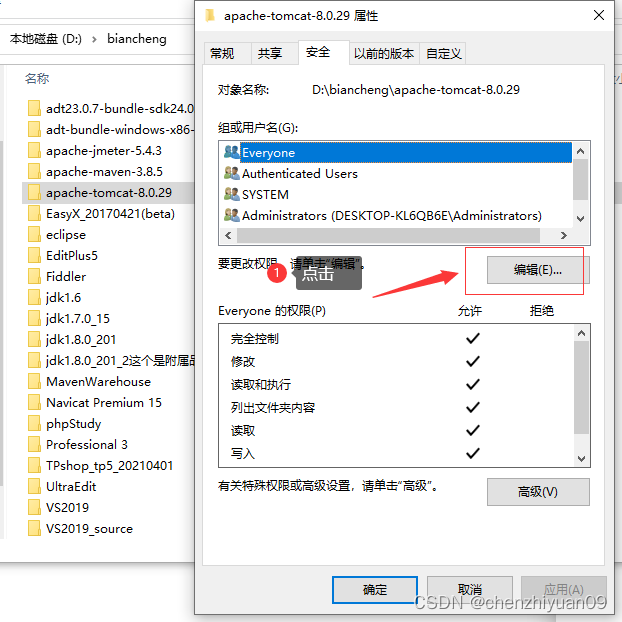 tomcat8w.5.78,和tomcat8w.0.29删了一天了删不掉,找到这哥们的博客,下图已经成功删掉一个了,点击右边的userset文件夹添加本机用户权限,系统埃里猫权限不够,他娘的...