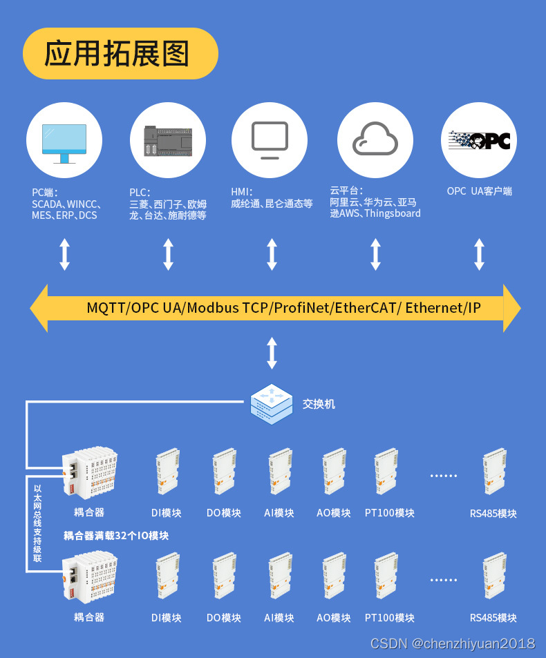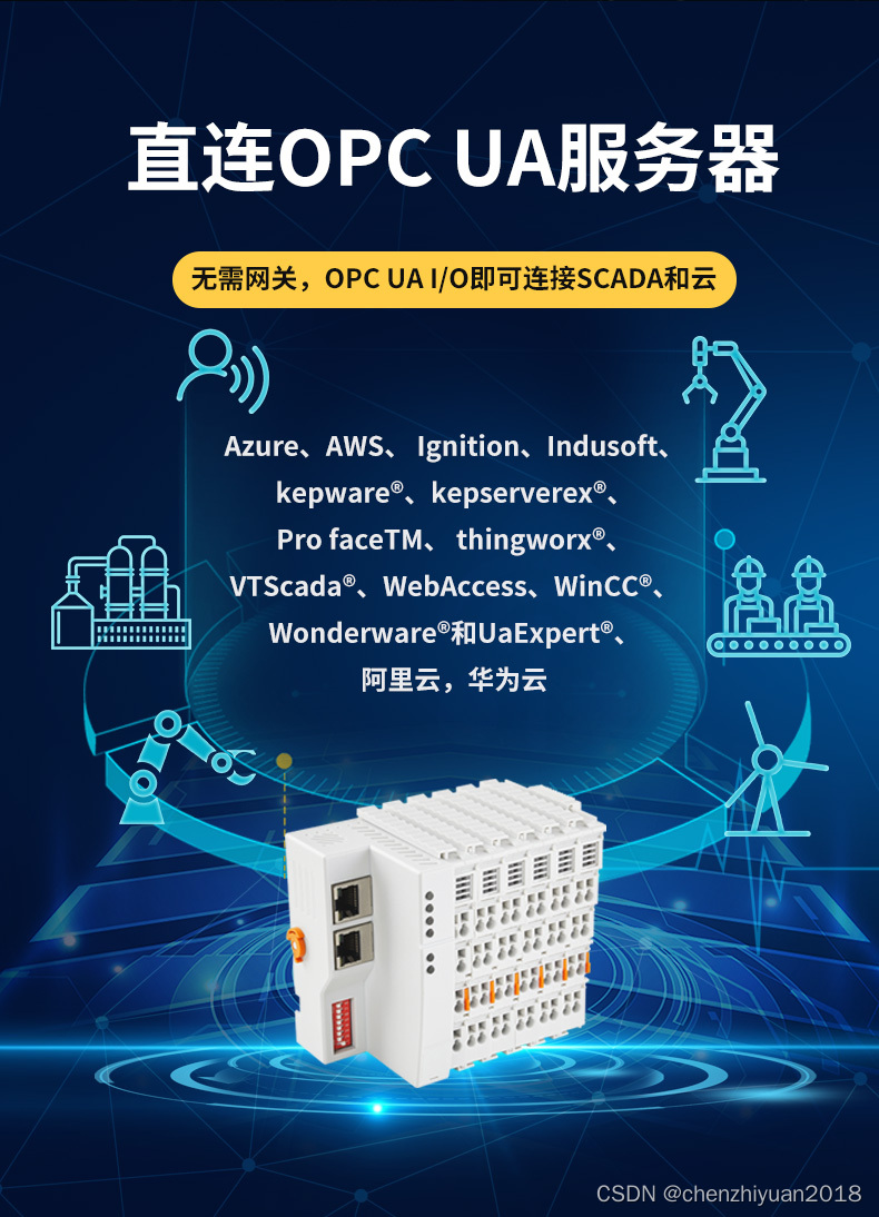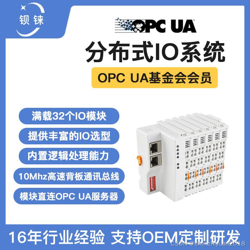 OPC UA IO模块是指IO模块支持OPC UA协议,可以直接与OPC Client进行通信,这样就可以从OPC Client上直接远程通过以太网对IO口进行操作与监测。