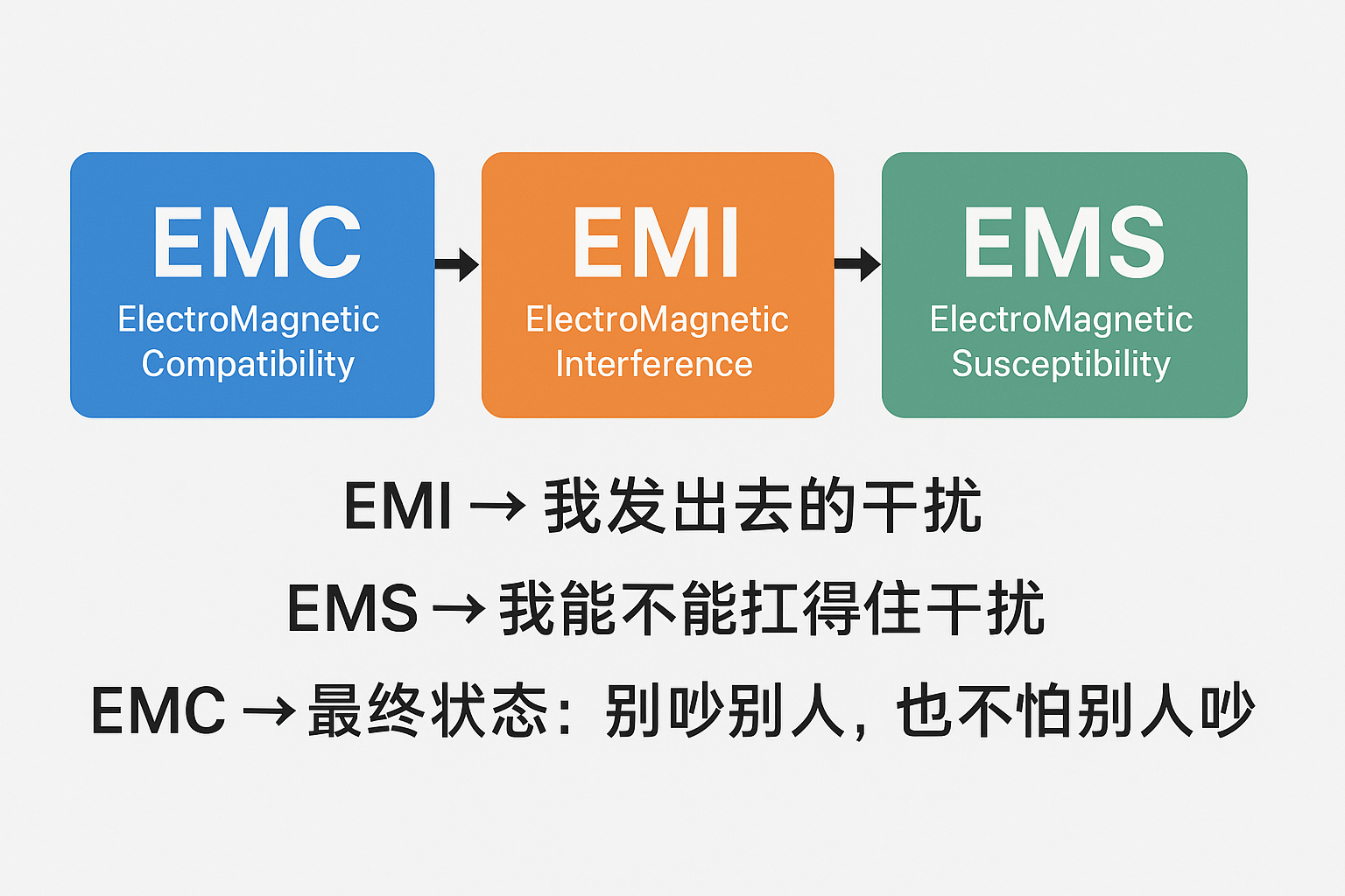 在工业圈子里,有三个常被挂在嘴边的缩写:EMC、EMI、EMS。听起来专业又高冷,其实它们就像电磁“江湖三兄弟”,各有分工,却常常被人搞混。今天我们就用大白话把它们捋清楚。