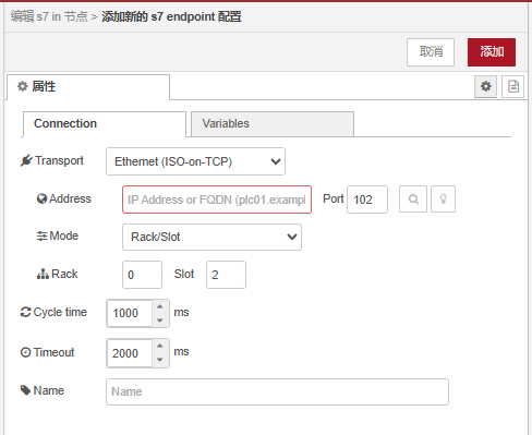 Cycle time(采集周期):配置从PLC读取变量的时间间隔,如果设置0则禁用自动读取