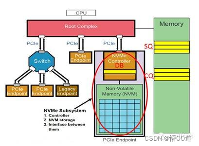 SQ和CQ在Host的memory中以及DB在SSD端,上图中的NVMe Subsystem一般就是SSD。