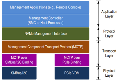 NVM Express(NVMe)是一个寄存器级接口,允许带内主机软件与NVM子系统通信。NVMe管理界面(NVMe-MI)允许管理控制器通过一个或多个外部接口与NVMe NVM子系统进行带外通信。