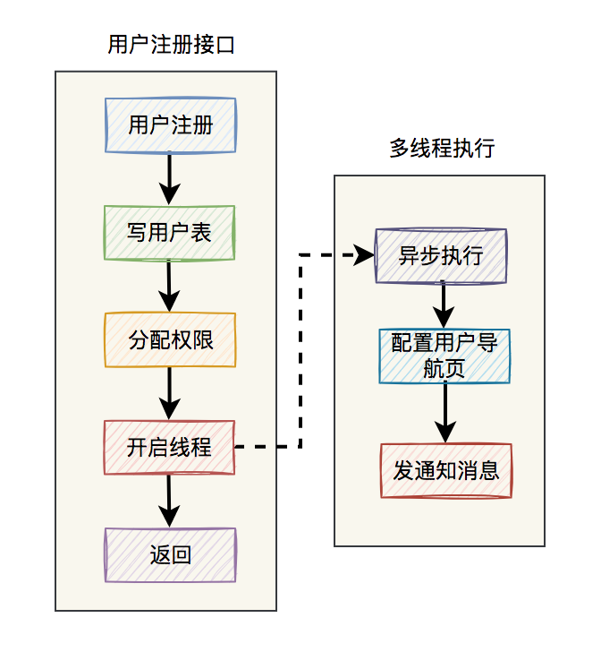 该用户注册接口包含的业务逻辑比较多,如果在接口中同步执行这些代码,该接口响应时间会非常慢。
