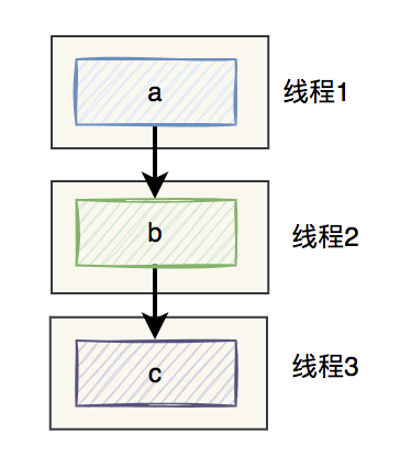即线程启动的顺序是:a,b,c,执行的顺序也是:a,b,c。
