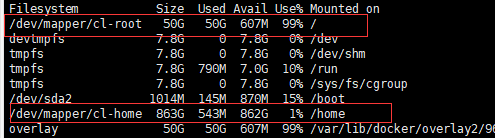 可以看到,这里home目录空闲的空间还很大,因此,我们将home的空间分给根目录一些。