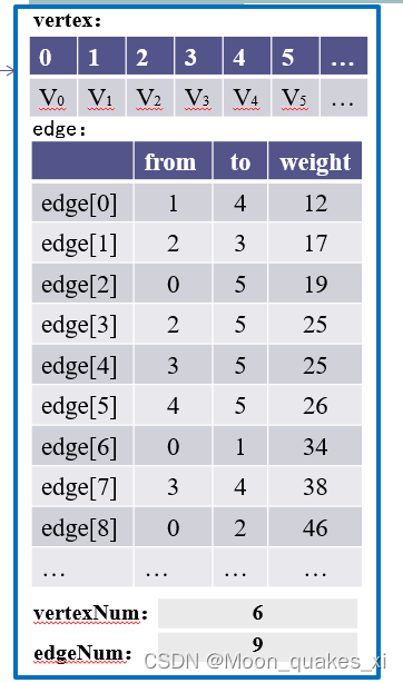 数据组织就是一个顶点表和递增的边表(当然顶点个数和边的个数)