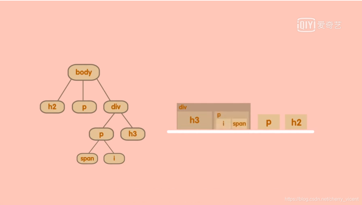 如果子节点下还有子节点,在传送带上的时候就继续套到子一级的盒子内部,根据它在DOM树上的结构,可以嵌套的层级没有限制的。