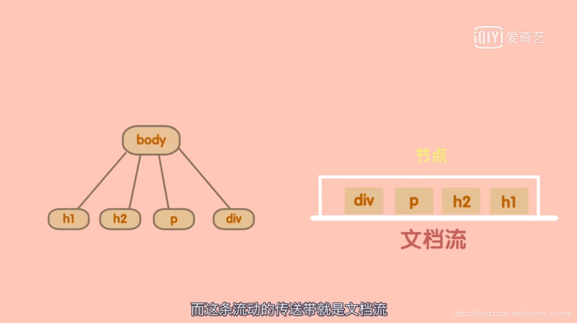 浏览器按从上到下、从左到右的顺序,读取DOM树的文档节点,顺序存放到一条虚拟的传送带上,传送带上的盒子就是节点,而这条流动的传送带就是文档流。