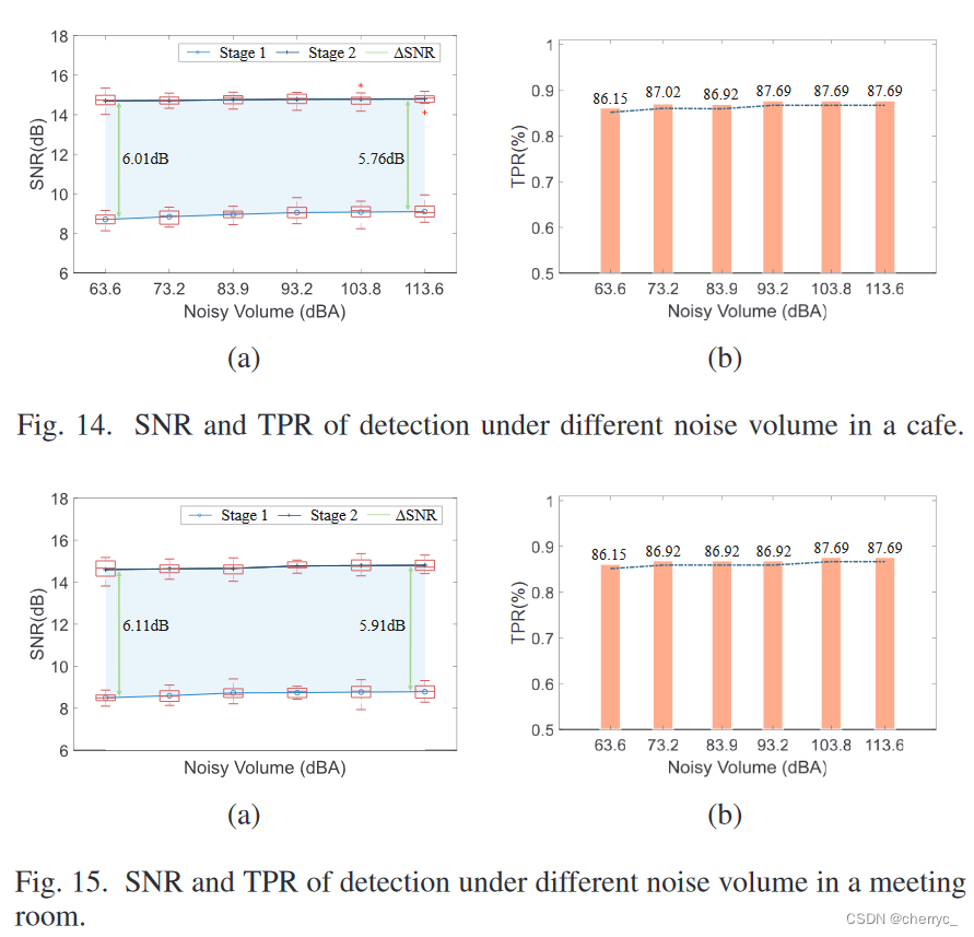 录音器的位置:放在桌子上、用纸覆盖、握在手里、装在口袋里。虽然人体会显著影响SNR,但是真阳率还可以接受。