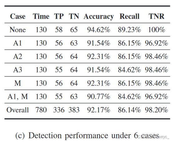 经过780轮检测后发现整体的正确率为92.17%,真阴率为98.20%。说明在认证设备摆放合理的情况下,也能降低干扰,提高检测精度。