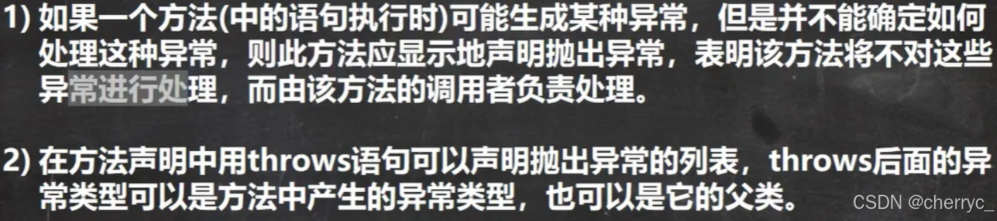 作用:在方法签名中声明该方法可能抛出的异常类型。