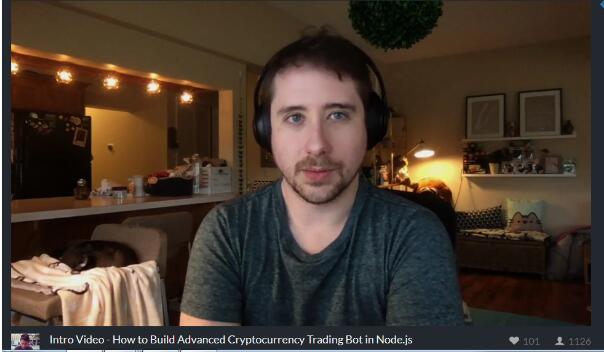 LiveEdu 上小哥正在与观众互动,讲解如何用 Node.js 开发高级炒币机器人