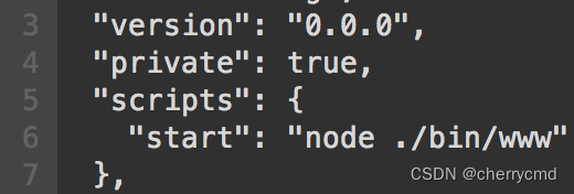 这里启动过的时候 不要用 node app.js 这种方式, 你可以 用 vim 命令看看test目录下的 package.json 这个文件的内容,其中找到scripts 哪一行