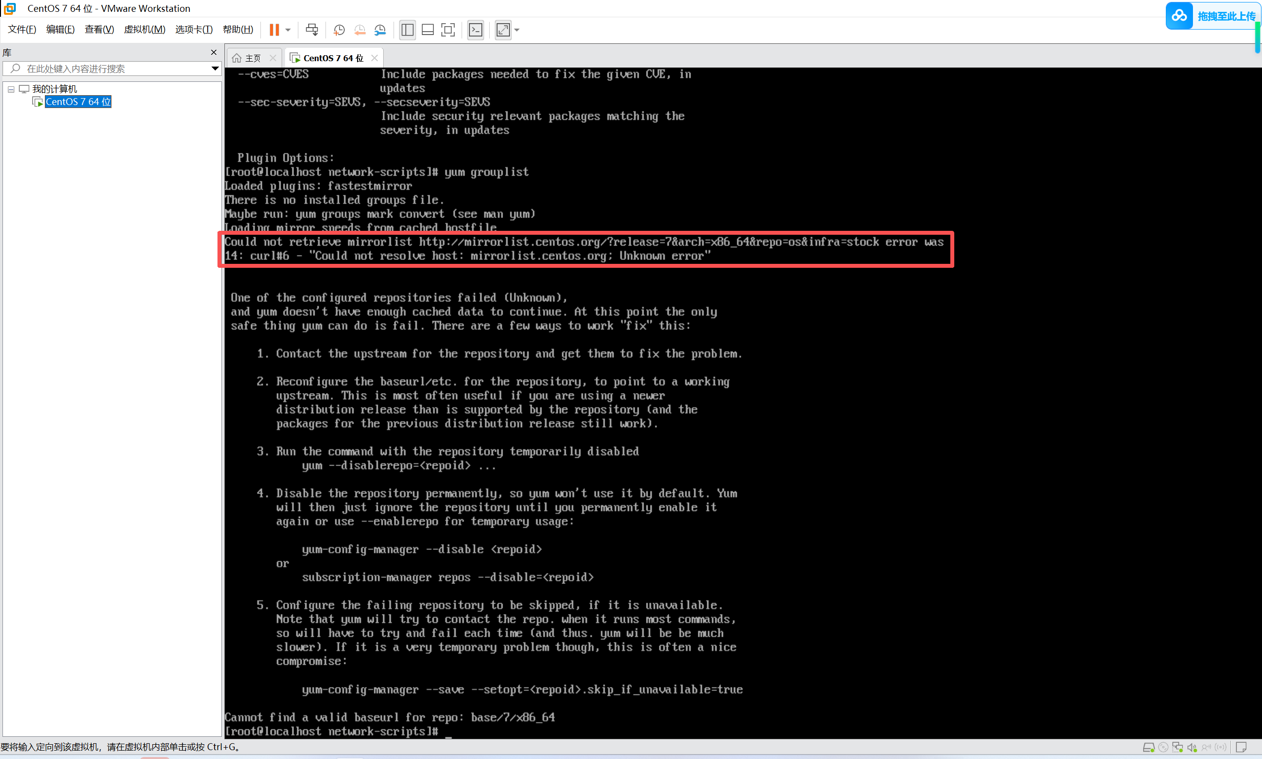 当然,这对新手及其不友好,因为你装着装着就会发现——当前的镜像地址无法找到yum所需的文件!究其原因是CentOS 7 的官方仓库在 2024 年 6 月 30 日之后已经停止维护。所以使用 CentOS 7 官方仓库可能会遇到问题,那就只能换源。