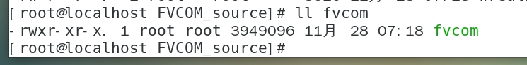 安装成功后,可使用ll命令在当前目录查看生成的可执行文件“fvcom”