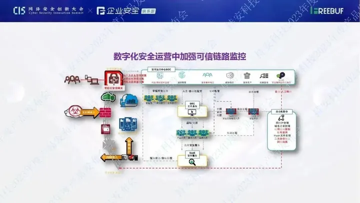 新东方采取数字化安全运营的方式,从B端用户设备进来的所有流量,会通过安全网关整合到SOC,与其他相关的监控告警相融合,成为数据的采集点与响应点,完成安全运营中全链路的监控。