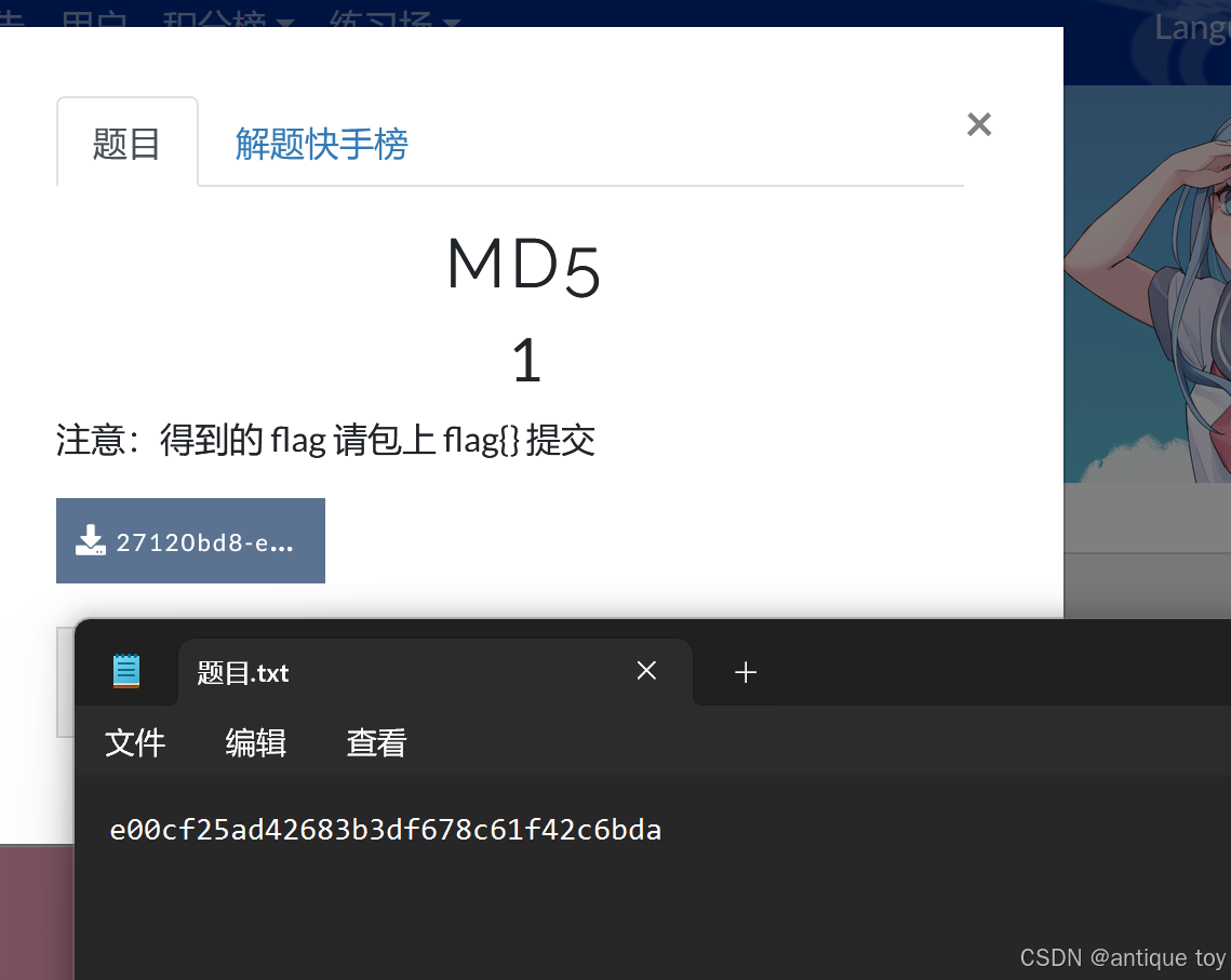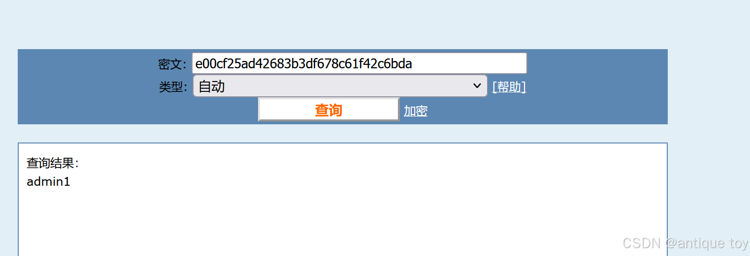 题目已经告诉我们MD5解密了,那么我们可以直接找网站进行解密