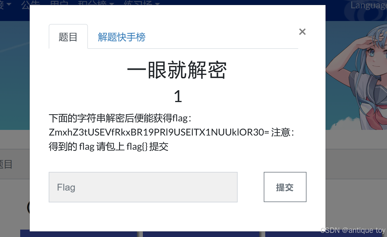 单看题目 猜测是base64加密 我们解密看看