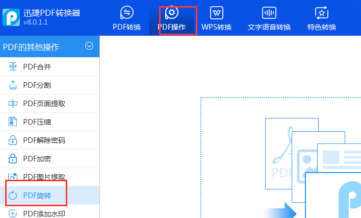 2、接下来用鼠标点击打开下载好的PDF转换器,点击PDF操作功能,接下来用鼠标点击PDF旋转功能。
