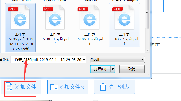 3、功能选择好之后,接下来用鼠标点击界面下面的添加文件,将会弹出一个窗口,在窗口中找到PDF文件,将文件添加到转
