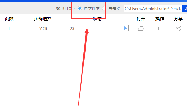 5、在转换之前,最好给转换之后的PDF文件保存好位子,用鼠标点击界面上面的输出目录后面的原文件夹的保存路径,来保存PDF文件。