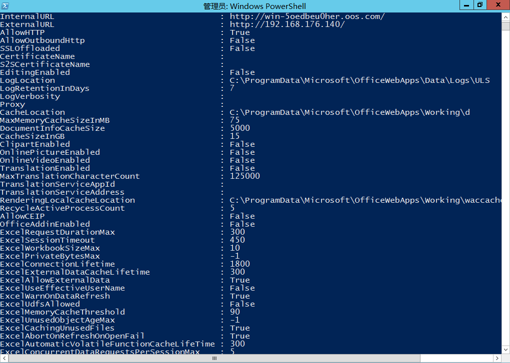 New-OfficeWebAppsFarm -InternalURL "http://WIN-5OEDBEU0HER.oos.com" -ExternalURL "http://192.168.176.140" -OpenFromUrlEnabled -AllowHttp