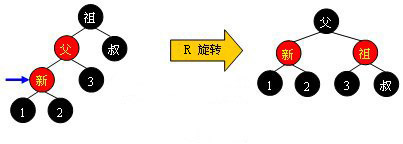 需要注意的是,无论“父节点”在“叔节点”的左边还是右边,无论“新节点”是“父节点”的左孩子还是右孩子,它们的操作都是完全一样的(其实这种情况包括4种,只需调整颜色,不需要旋转树形)。