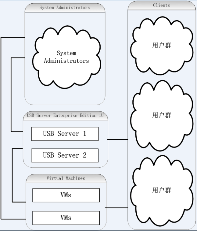 需要把 USB 设备部署到远离机房的场所,例如数据管理中心;对安全要求较高的开发部门和对敏感数据有要求的政府部门。