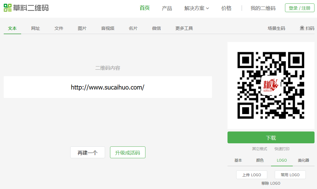 2.通过草料二维码生成器:https://cli.im,输入网址和上传logo即可