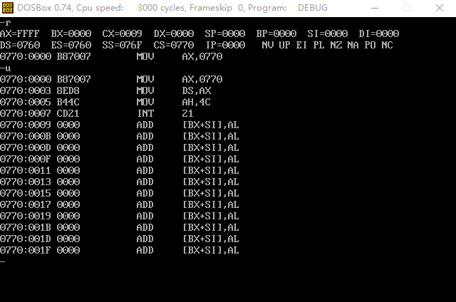 可用当前地址加上CX寄存器的数值,就可以得到程序的全部代码了,CX寄存器存的是机器码的长度,所以要减1